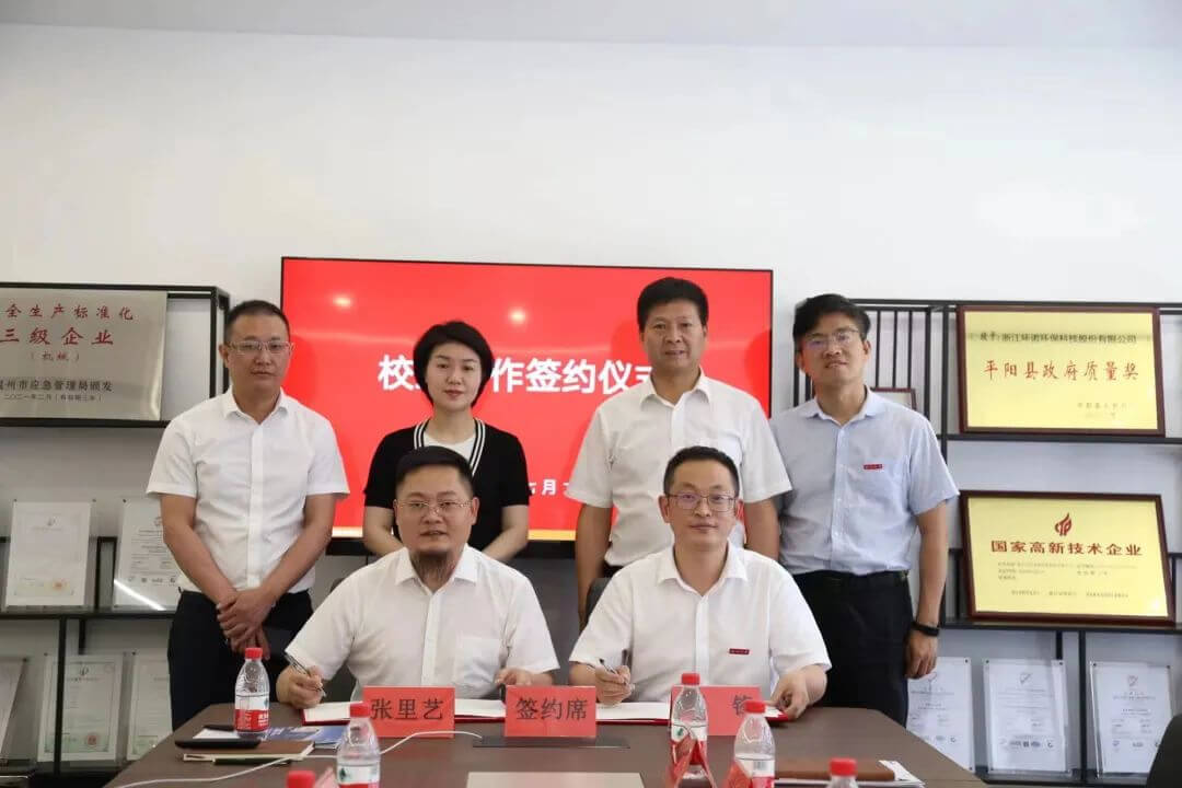 Daha sonra okul temsilcisi, şirketimizin temsilcisi ile bir okul işletmesi işbirliği anlaşması imzaladı ve Vnor Çevre Koruma ile Wenzhou Üniversitesi arasındaki okul işletmesi işbirliğinin resmi açılışını münasebetiyle 'okul işletmesi kooperatif istihdam staj üssü'nü verdi.